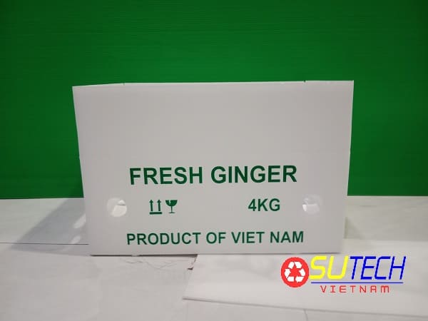 Thùng nhựa đựng gừng thuộc loại thùng nhựa nông sản, thường được dùng để đóng gói gừng và xuất khẩu đi các nước Trung Quốc, Thái Lan, Úc, Ấn Độ,...